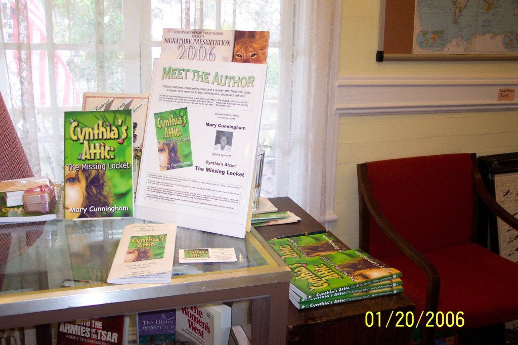 I sold 11 Cynthia’s Attic books that day! The bookstore owner was amazed. “I believe that’s a record.” I wasn’t sure whether she was happier for me, or for the fact she wouldn’t have to send a poor newbie author home with the exact number of books she came with.