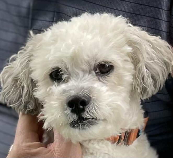 We’d had our eye on a little fella I spotted on their website. He’d had a horrendous few years, but was recovering nicely. And, he and his foster mom would be at the event. We soon realized he was way too small for our lifestyle. Our home had double decks with posts he could’ve easily slipped through falling twenty feet. Disappointed, I walked over to a couple to find out if they knew which dogs were for adoption since the afternoon was also attended by pet parents and their adoptees. They sat on a sofa with a small white dog between them. He immediately stood up, wagging his tail and greeting me. His foster mom said, “Well, I’m not sure which dogs are ready for adoption, but Butters will be next week. Why don’t you sit down and get to know him.”
